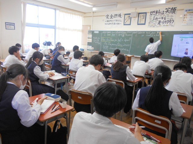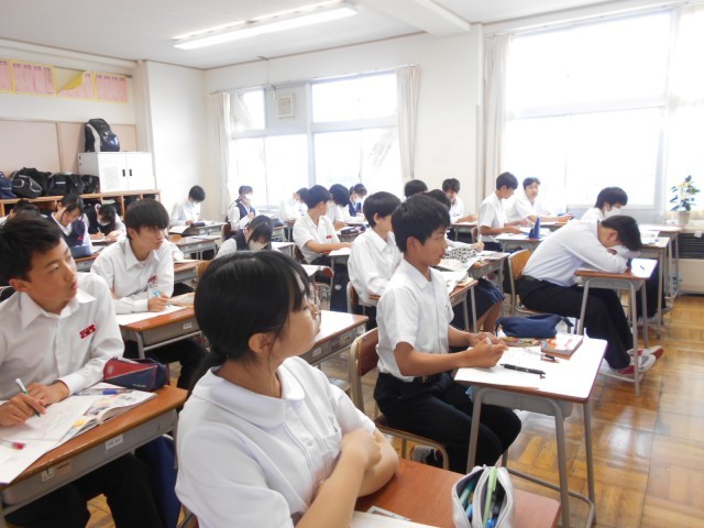 (写真 上:3年1組 社会「日本はなぜ国際連盟を脱退したか」)
