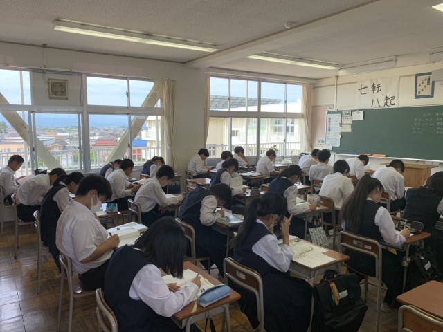 多くの生徒が大会に参加しているため、大会参加のない3年生は2つのクラスに分かれて自習をしていています。