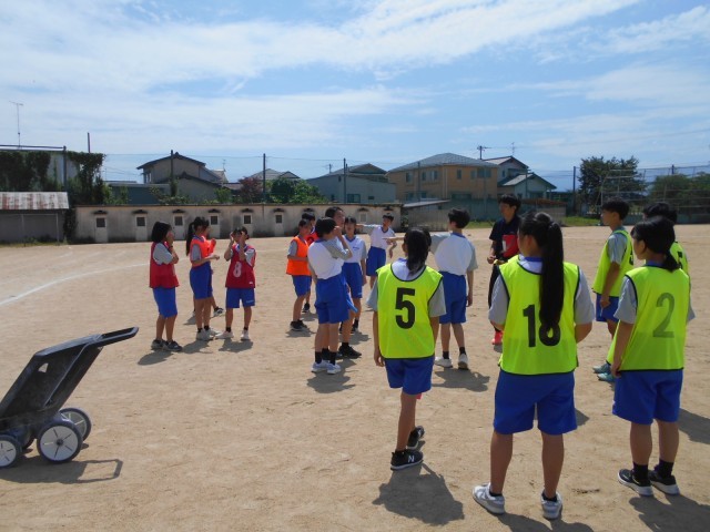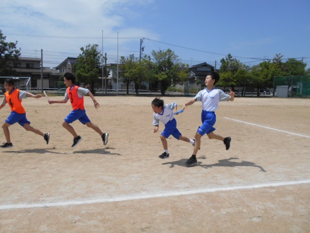 1年・体育・リレー 公開日 2025/06/18 更新日 2025/06/18 1学年 6月18日(水) 2限 1年4組の体育の様子です。バトンのつなぎ方や走順を工夫し、リレーをしています。気温が上がっていますが、こまめに水分補給をして取り組んでいます。