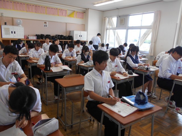 3年・授業風景 公開日 2025/06/18 更新日 2025/06/18 3学年 6月18日(水) 2限 3年生の授業の様子です。来週の期末考査に向けて、真剣に問題演習などに取り組む姿がありました。 (写真 上:3年1組 英語「How do you choose your cloths?」)(写真 中:3年3組 理科「問題演習」)(写真 下:3年5組 総合「よりよい社会を考えよう」)