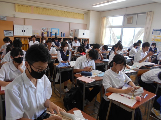 2年・国語・短歌に親しむ 公開日 2025/06/19 更新日 2025/06/19 2学年 6月19日(木) 2限 2年4組の国語の授業では、短歌を読んでいます。「夏のかぜ山よりきたり三百の牧の若馬耳ふかれけり」(与謝野晶子)今の季節にぴったりの歌です。季節感を生き生きと描いた作者たちの感性に、共感しながら短歌を味わっています。