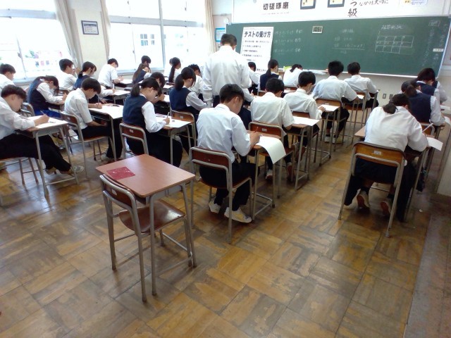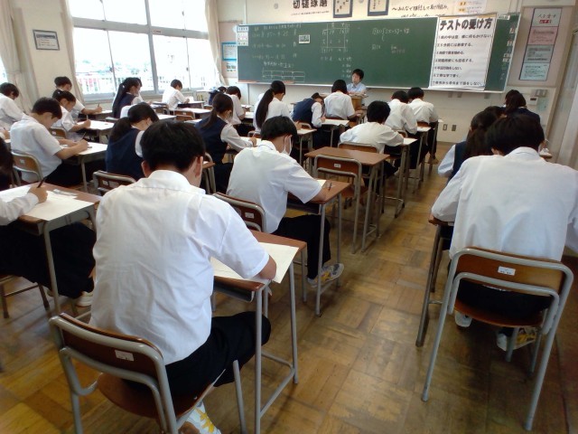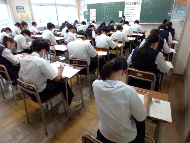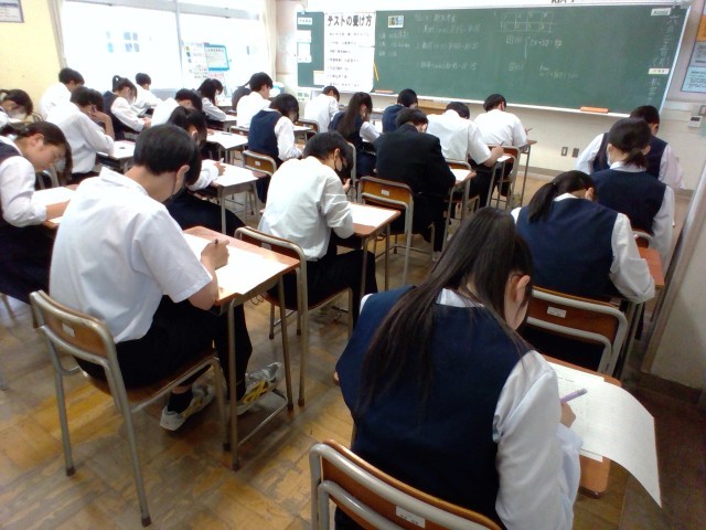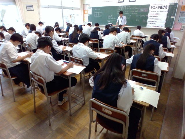 2年・1学期末考査・1日目 公開日 2025/06/23 更新日 2025/06/23 2学年 6月23日(月) 3限 2年生の1学期末考査の様子です。保健体育の問題に向き合っています。(写真:上から2年1組〜5組) +2