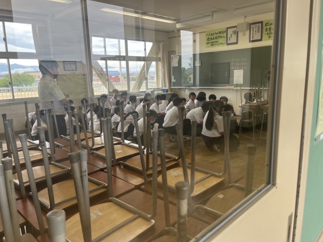 放送を正しく聴き、教室内でバリケードをつくり、落ち着いて待機することができました。