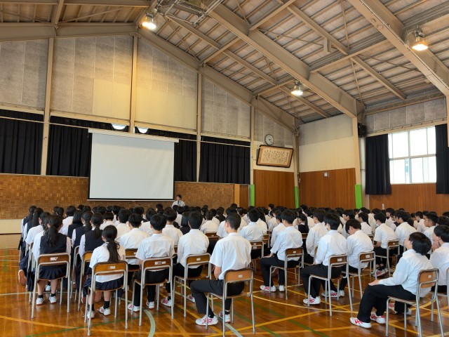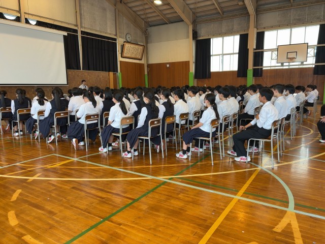 3年・学年集会 公開日 2025/06/27 更新日 2025/06/27 3学年 6月27日(金)6限体育大会に向けての学年集会を行いました。学年主任から、体育大会への心構えや普段の生活の様子等のお話がありました。