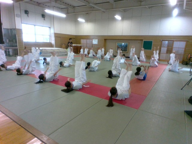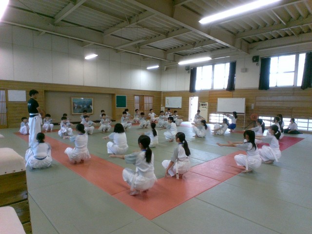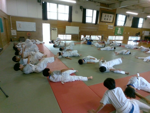 1年・体育・柔道 公開日 2025/07/02 更新日 2025/07/02 1学年 7月2日(水) 1限 1年5組の体育では、柔道をしています。基本となる「蹲踞(そんきょ)」という姿勢から、後ろや横に受け身をとる練習です。手の動きや下半身の角度など、身体全体の動きのバランスに気を配り、アドバイスをし合いながら練習しています。