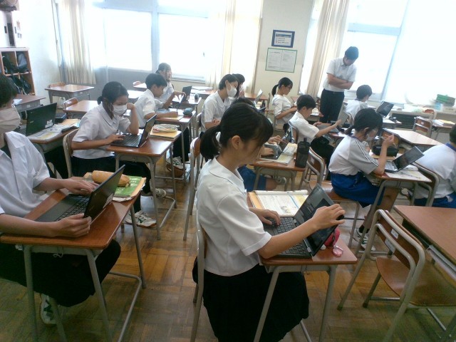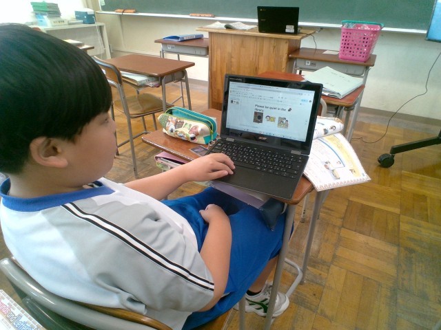 これまでに習った文法を使い、工夫してスライドを作成しています。