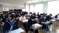 12月3日(水) 1限 3年生は、実力テストを受けています。1日で5教科すべての...
