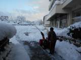 12月27日(月) 生徒玄関前の細かいところは、野球部がスコップをもって除雪...