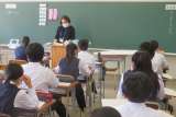 5月30日(火) 5限 担任の先生の話に真剣に聞き入る様子、体育館で一生懸命...