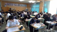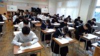 12月3日(水) 1限 3年生は、実力テストを受けています。1日で5教科すべてのテストを受けます。1限目は社会です。寒さに負けず、集中してがんばっています! (写真 上から3年1~3年5組)