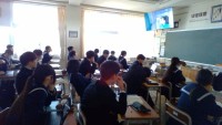 12月1日(月) 6限 1年生の教室を巡っていると、1年3組は保健体育の授業で、誠道館に行っています。教室の机が、清掃に備えて、前に出されています。よい習慣になっています。
