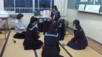 12月11日(木) 16:30 茶道部の様子です。来週のクリスマス茶会に向けて、練習にも熱が入ります。講師の先生から作法を学ぼうという意欲的な姿勢が感じられます。