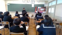 3月5日(木) 美容師についての話を聞きました。<生徒の感想> 美容の仕事に必要な資格や知識、技術を教えていただきました。美容とは別に接客の仕事も大事だというのが心に残りました。
