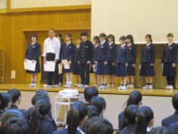 次に先日行われたドッジボール大会の表彰が行われました。受賞したクラスはおめでとう...
