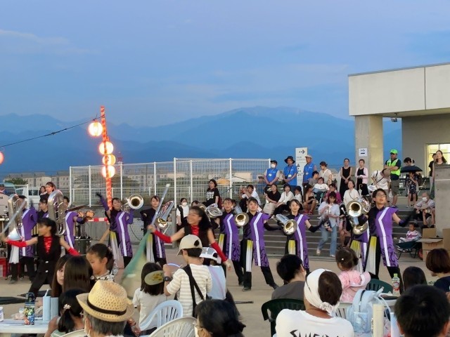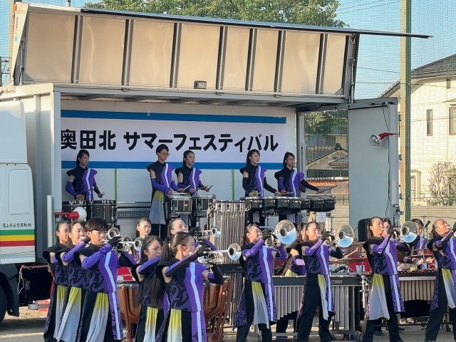 奥田中学校の生徒が所属している「奥田ジュニアマーチングバンド」が、奥田地区、奥田北地区、豊田地区の納涼祭に出演しました。