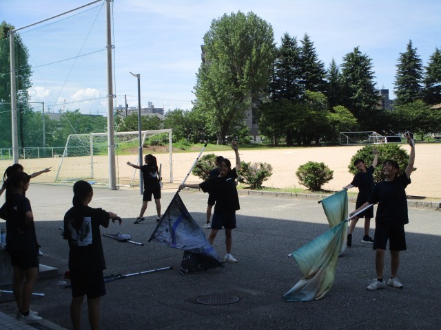 屋外での部活動の様子です。朝夕は過ごしやすくなってきましたが、日中はまだまだ暑さを感じます。水分補給をしながら、元気に活動しています。