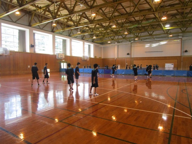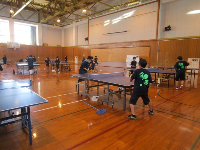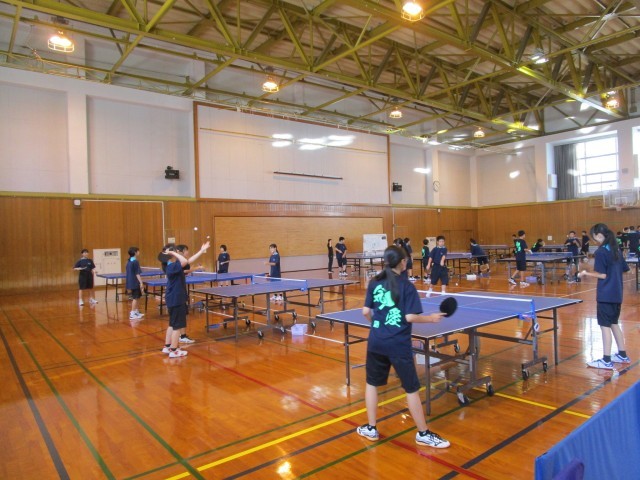 体育館での活動の様子です。後半は、ハンドボール部と卓球部が活動しています。
