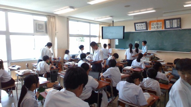 2限、1組(上)2組(中)は社会、3組(下)は英語の授業でした。