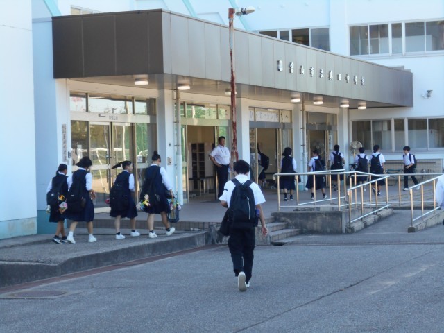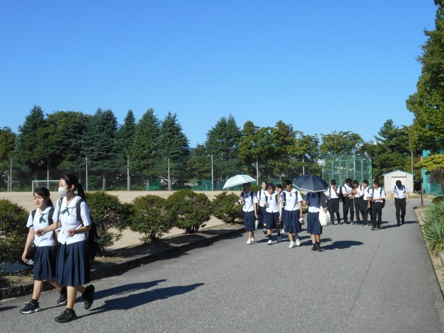 9月2日(火) 登校の様子 公開日 2025/09/02 更新日 2025/09/02 学校だより 9月に入っても連日の猛暑日の予報が出ています。暑さの中でも生徒たちは元気に登校しています。日傘をさして登校する生徒も増えてきています。熱中症を防ぐ対策をお願いします。 +1