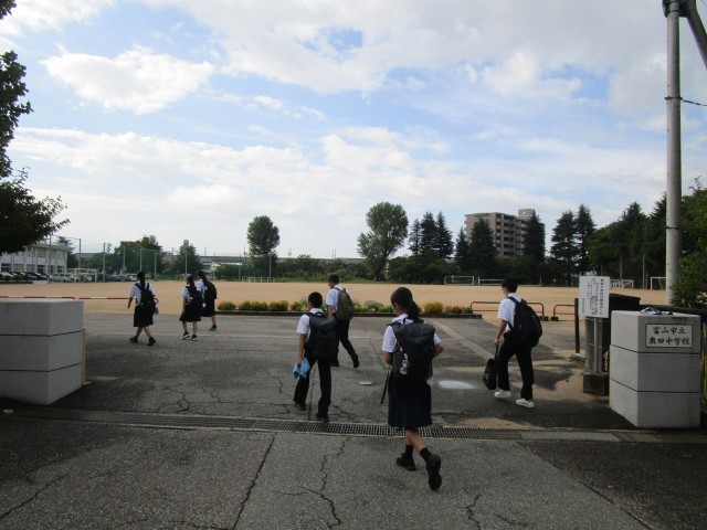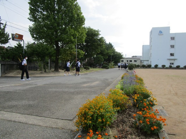9月3日(水)登校の様子 公開日 2025/09/03 更新日 2025/09/03 学校だより 心配していた雨もひどくはならず、生徒の登校時刻には晴れてきました。雨のおかげで気温が下がり、花壇の花が喜んでいるようです。