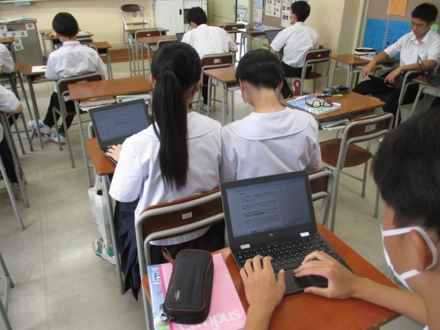 5組の技術では、野菜の栽培方法について、各々スライドを作成しています。