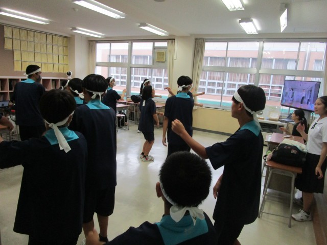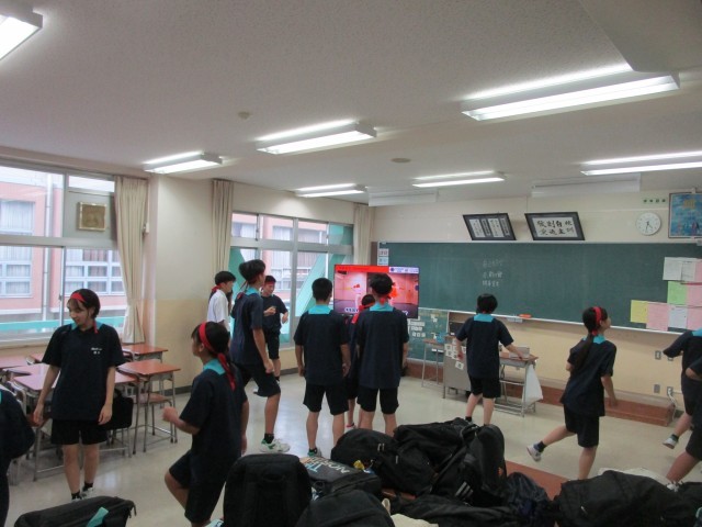 今日の放課後の団リーダー練習は、1、2年生が合流して1回目の練習でした。3年生が団演技の動きを実演しながら伝えていました。