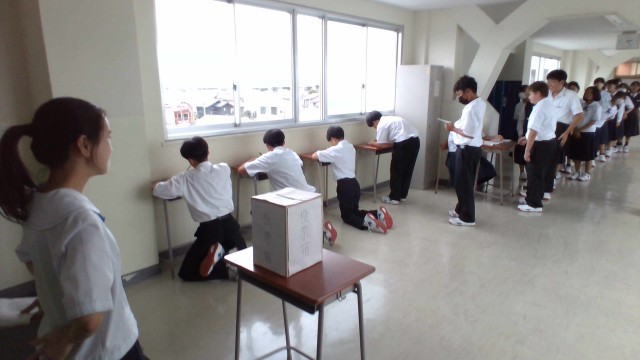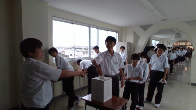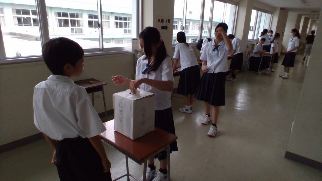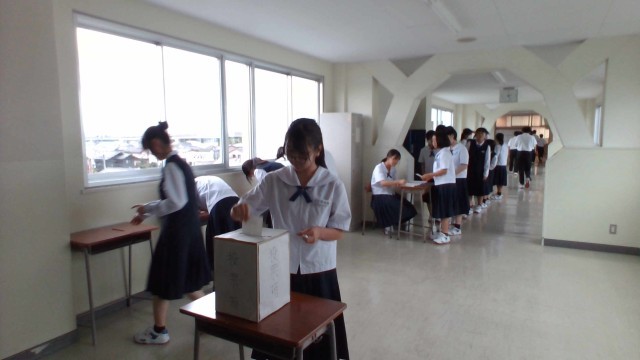 9月10日(水) 後期生徒会選挙 1年生の投票 開票の様子 公開日 2025/09/11 更新日 2025/09/10 生徒会 本日 後期生徒会選挙の立会演説を音楽室で行いました。どの候補者も熱く自分の公約や考えを述べていました。それを各教室に配信して見ました。最初の4枚の写真は、1年生の投票の様子です。最後の1枚の写真は選挙管理委員の開票の様子です。果たして、当選者は・・・明日の朝の放送をお待ちください。 +2