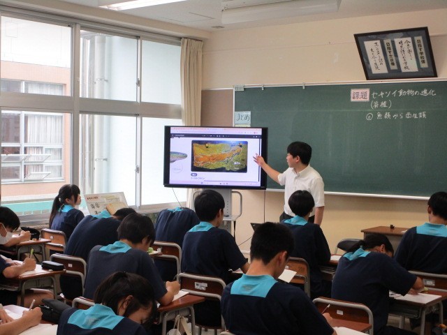 4組(理科)は、セキツイ動物の進化について学習しています。