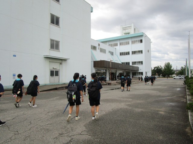 9月18日(木)登校の様子 公開日 2025/09/18 更新日 2025/09/18 学校だより 登校の時間帯は曇り空、生徒が校舎に入ったら雨が降り出しました。 今日は、体育館や教室で体育大会の練習を行います。