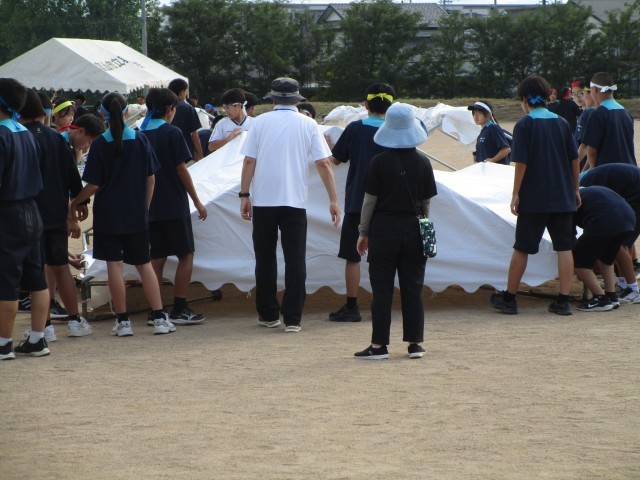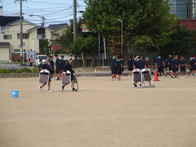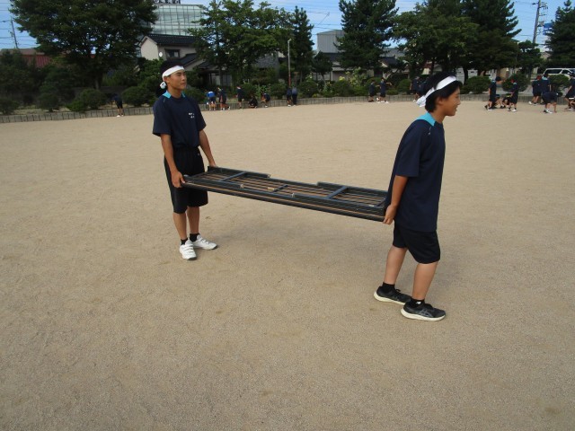 2年生は、本部テントや机と椅子を運ぶ担当でした。黙々と準備を進めていました。