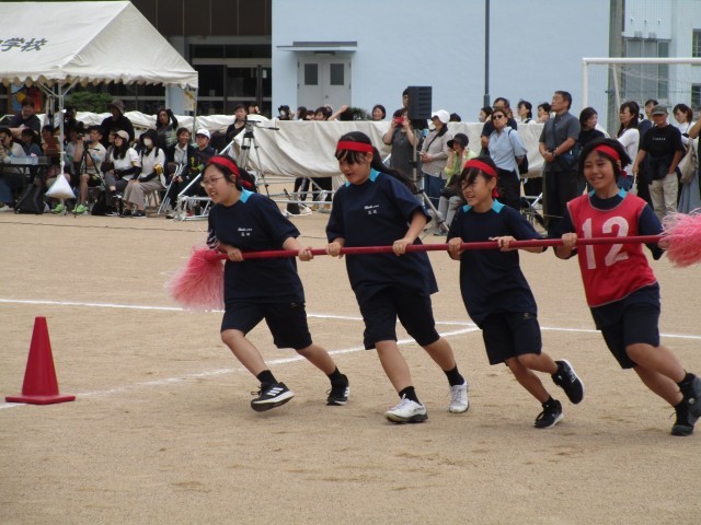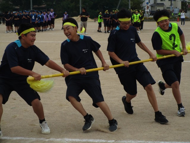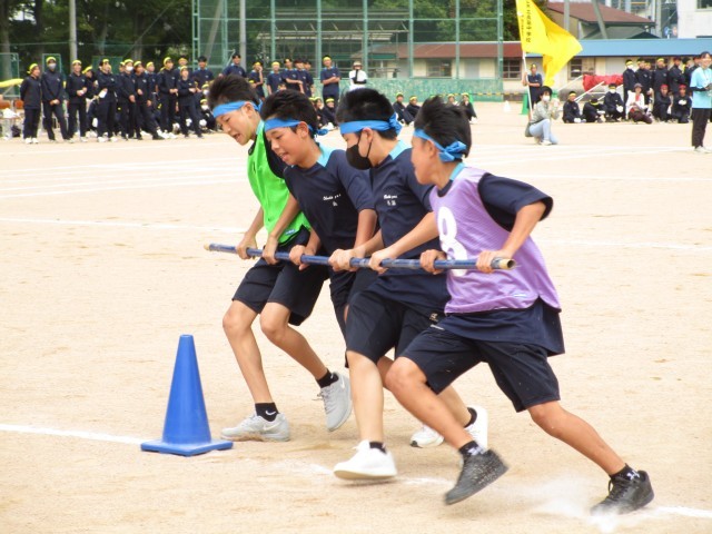 9月25日(木)体育大会初日 その5 公開日 2025/09/25 更新日 2025/09/25 学校だより 1年生の学年競技の様子です。力が入りすぎて途中で棒が折れて競技をやり直すハプニングもありましたが、協力して競技に取り組む姿が見られました。 +1
