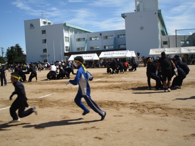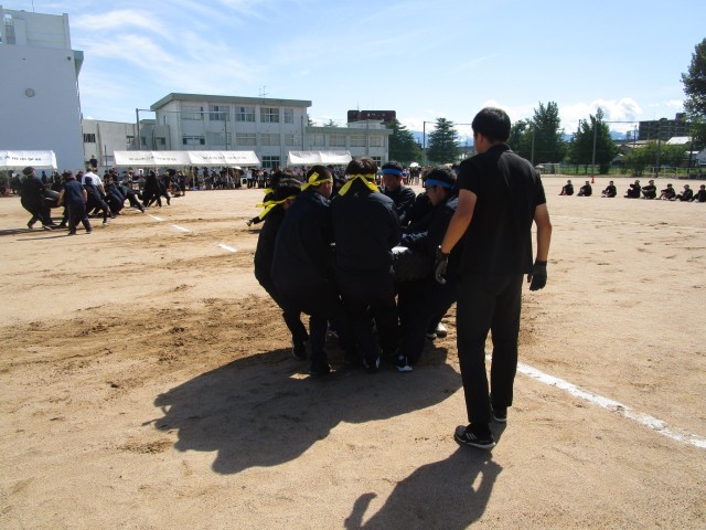 2年男子タイヤ引きの決勝戦の様子です。