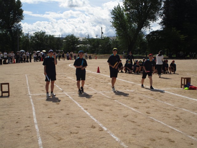 9月26日(金) 体育大会2日目 その12 公開日 2025/09/26 更新日 2025/09/26 学校だより 3年生の学年別リレーの様子です。最上級生としてたくましい走りを見せてくれました。 +2