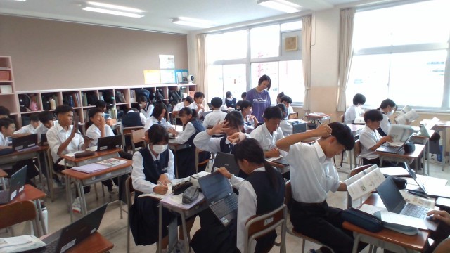 4組は、理科で再結晶の実験をしていました。5組は技術、6組は保健体育でした。