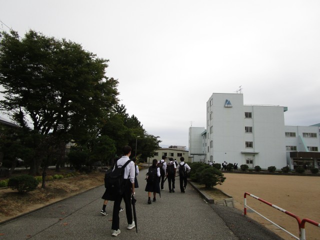 10月14日(火)登校の様子 公開日 2025/10/14 更新日 2025/10/14 学校だより 連休明けの登校の様子です。1・2年生は金曜日からの新人大会で充実した週末を過ごした生徒が多かったようです。 午後に、3年生が高校説明会を行います。保護者の皆様の出入り口は体育館です。