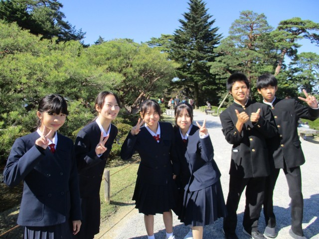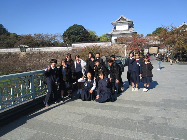 写真 上:石川門前にて 下:兼六園にて