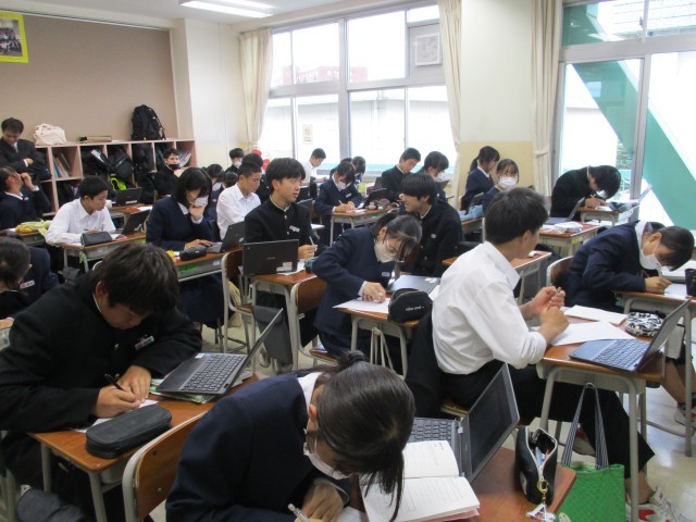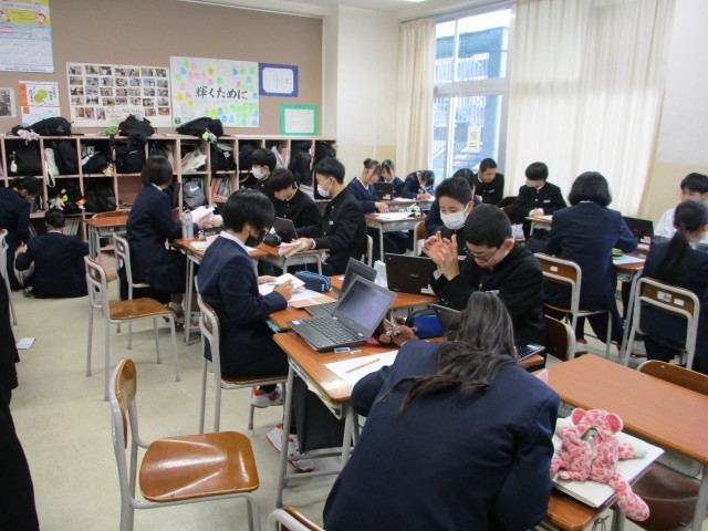 10月31日(金) 2学年総合的な学習の時間 その1 公開日 2025/11/01 更新日 2025/11/01 2学年 6限2学年は「総合的な学習の時間」に、昨日の「金沢校外学習」での課題追究学習についてまとめました。写真 上:2年2組 下:2年3組