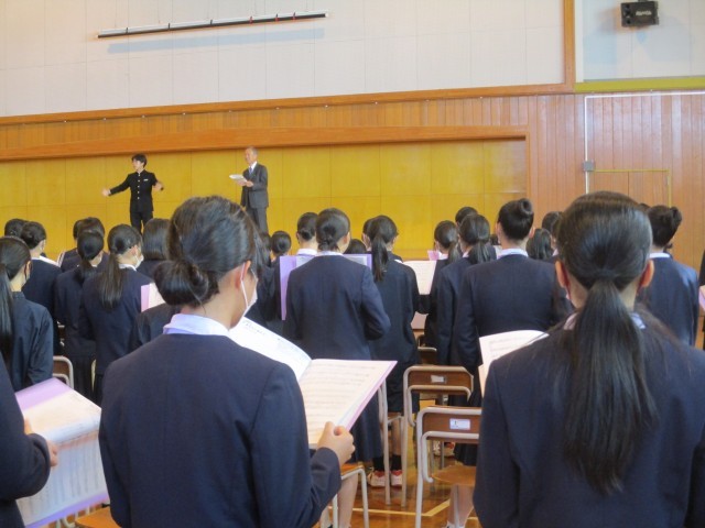11月4日(火) 2学年 富山市中文祭にむけて 公開日 2025/11/04 更新日 2025/11/04 2学年 6限2学年は11月8日(土)に行われる「富山市中学校文化祭」で歌う曲の合唱練習を行いました。特別講師の松下先生の指導を受けて歌いました。