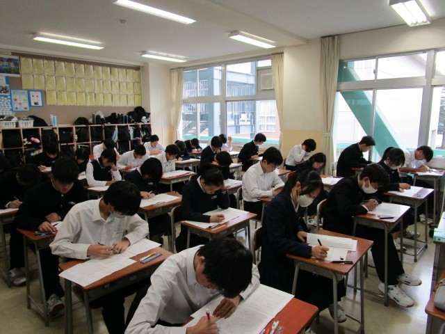 11月5日(水) 3年生 中教研学力調査① 公開日 2025/11/05 更新日 2025/11/05 3学年 1~3限に中教研学力調査を実施しました。3年生は進路選択に向けて大事な時期に入りました。学力調査を通して自分の定着具合を確認し、今後の学習につなげていきましょう。