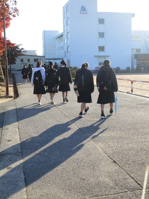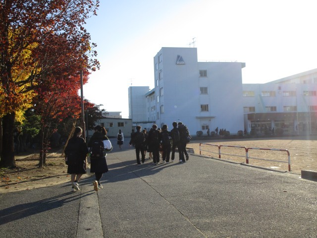 11月 12日(水)登校の様子 公開日 2025/11/12 更新日 2025/11/12 学校だより 晴天の朝、影が長く伸びています。朝夕の冷え込みに、暖かそうな防寒着を着て登校する生徒が増えています。