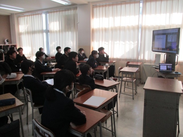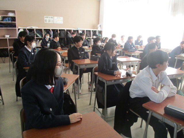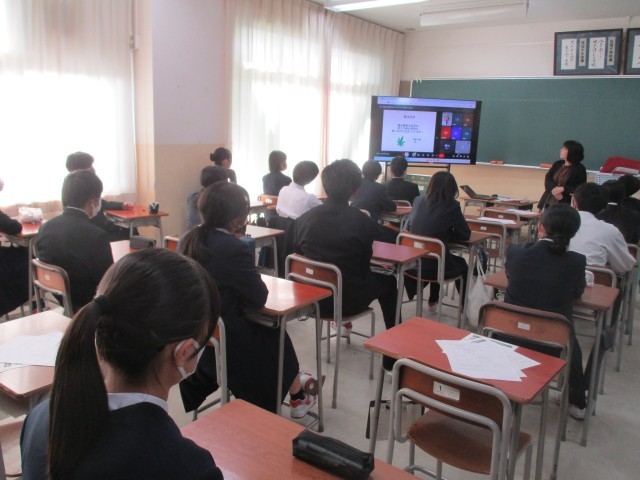 各学級の生徒は熱心に学校薬剤師の方の話に聴き入っていました。