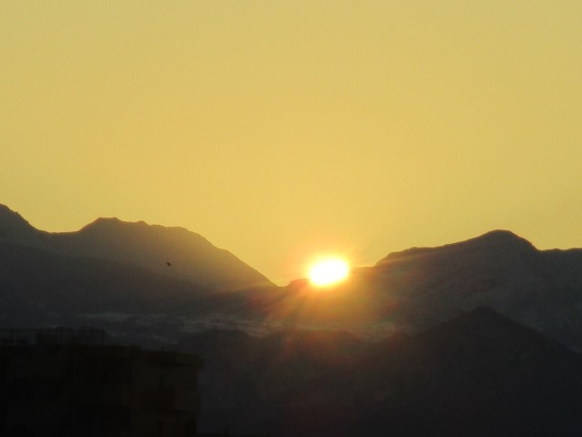 11月20日(木) 太陽が立山連峰から その2 公開日 2025/11/20 更新日 2025/11/20 学校だより 写真 上:茜色に染まる山の端 中:剣岳 下:いよいよ・・本日の富山市の日の出は6:34です。しかし、下の写真は6:55に撮影したものです。実は「日の出」とは地平線から太陽が昇ることです。富山市には地平線上に立山連峰があるため、太陽を実際に目にする時間は遅くなるのです。