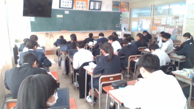 1組と2組は、来週の期末考査に備えて学習をしていました。3組は道徳でした。