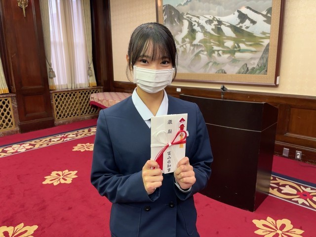 11月21日(金)吹奏楽部 全国大会激励会 公開日 2025/11/21 更新日 2025/11/21 部活動 全国大会に出場する個人・団体への激励会が県庁で行われました。吹奏楽部は12月6日に行われるマーチングバンド全国大会に出場します。代表として、3年生の部長が、激励の言葉をいただきました。全国大会まであとわずか。期末考査も近く、部活との両立は大変ですが、一生懸命がんばっています!