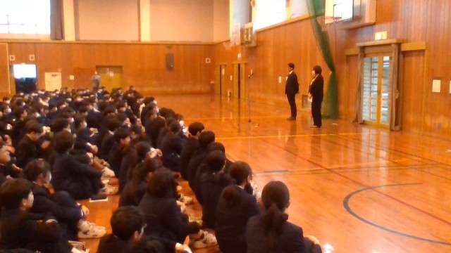 12月3日(水) 1年生 6限 授業の様子 その1 公開日 2025/12/04 更新日 2025/12/03 1学年 明日の校外学習の結団式を体育館で行いました。ます引率者の紹介、次に引率責任者の話がありました。