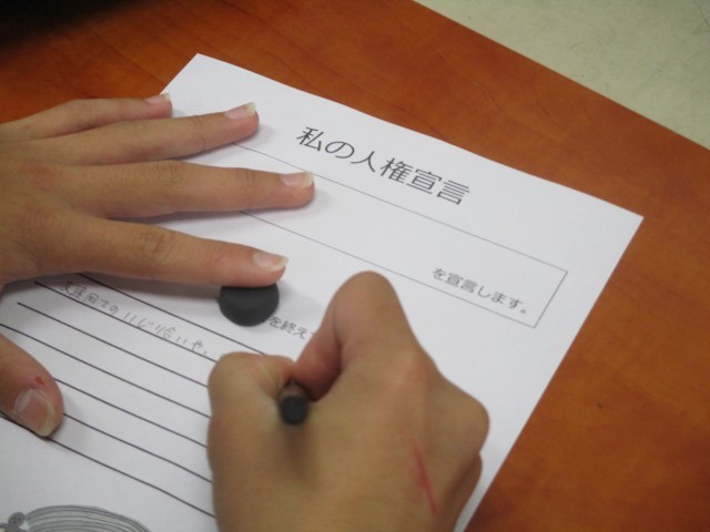 「奥中人権宣言」が採択されたあとで、各学級で「私の人権宣言」を一人ずつ書きました。