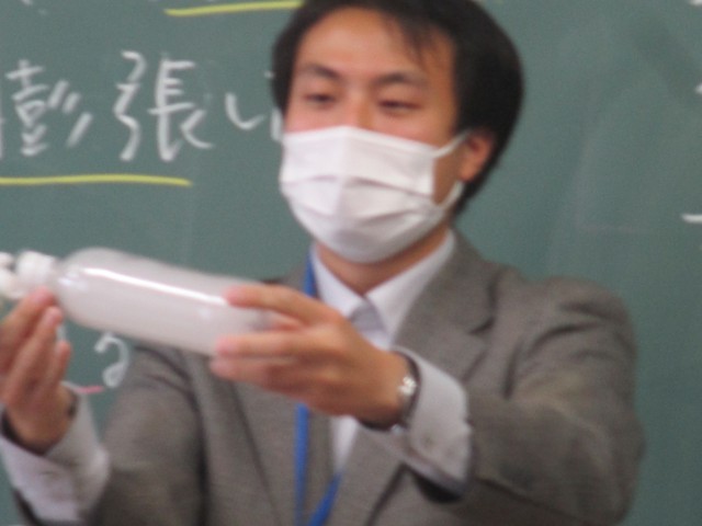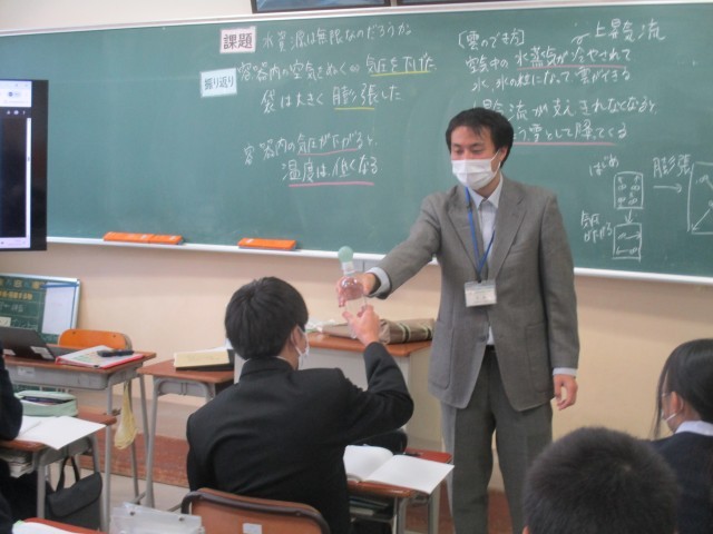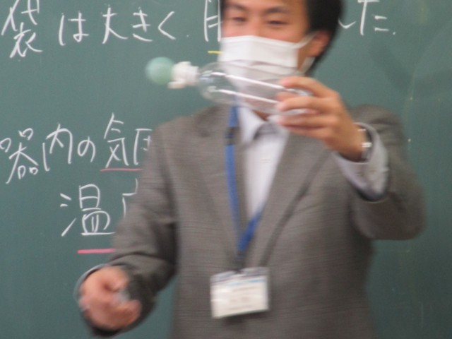 「ペットボトルの中の気圧を下げると「雲」ができました!」(写真 中→下)