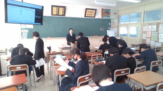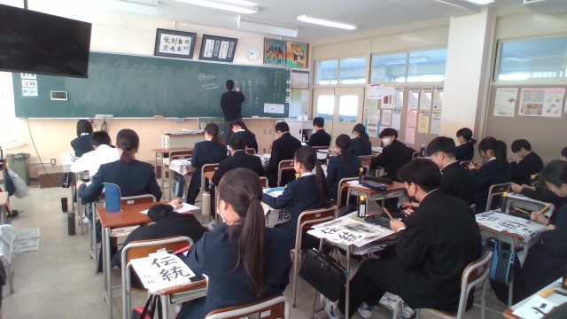 4組は国語で書き初め練習、5組は保健体育、6組は数学(少人数)でした。