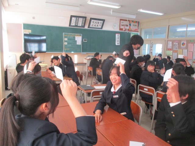 12月23日(火) 2学年 学活 その1 公開日 2025/12/23 更新日 2025/12/23 2学年 2限2学年の「学級活動」の様子を紹介します。写真 上:2年1組 「NGワードを探せ!」 中:2年2組 「2学期の振り返りの話し合い」 下:2年3組 4限目の学級レクリエーションに向けて準備