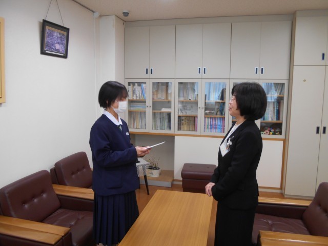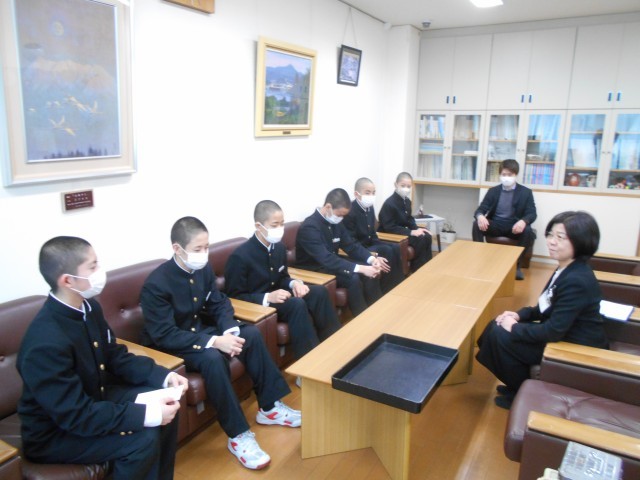 全国大会で頑張れ奥中生! 公開日 2025/12/27 更新日 2025/12/27 学校だより 12月24日、放課後に全国大会に出場するバレーボール部と剣道部の生徒に同窓会からの激励費を贈る会を行いました。生徒は、力強く大会での抱負を語り、出発しました。奥中生の健闘を祈っています!